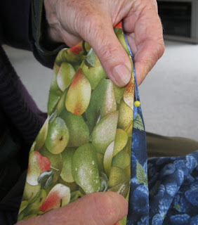 It was difficult to walk as my friend D (from P & Q )and her friend J who came to visit found out. Every Saturday afternoon D goes and collects J from the home she lives at and takes her on an outing. J can't remember D's name or that it is Saturday. J likes gardens and colour( so do I ). I had invited D to bring J out to visit again and we would walk down the orchard and pick oranges for her to take back and share with the other residents where she lives. It was an appalling day weather wise but we did it anyway. Several times we went backwards instead of forwards as gust of wind raced around corners and through gaps in the hedges. J says she likes to walk ....but is oh so slow. ( and she stops and forgets to get going again) She held the bag open while D picked oranges into it. On the way back I carried a big bag around my neck for support and D and J carried the other bag. I suggested they thread the handles of their bag through the umbrella and each hold an end. This proved a great idea cause then J had to walk at the same ( slower than usual ) pace we walked. Usually if you want her to walk with you you need to thread your arm through hers.